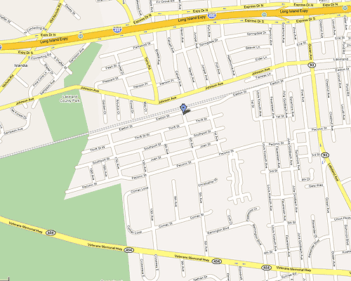 Take Sunrise Hwy. to Exit 49, Lakeland Ave. north. Follow Lakeland Ave. north to Veterans Memorial Hwy. (454). Make a left turn onto Veterans Memorial Hwy. heading west. Follow Veterans Memorial Hwy. west for 5 traffic lights. At the fifth traffic light make a right turn onto Fifth Ave. (Rodeway Inn on corner). Take Fifth Ave. to the end. 2387 Fifth Ave. is on the right corner of Fifth ave. & Easton St.